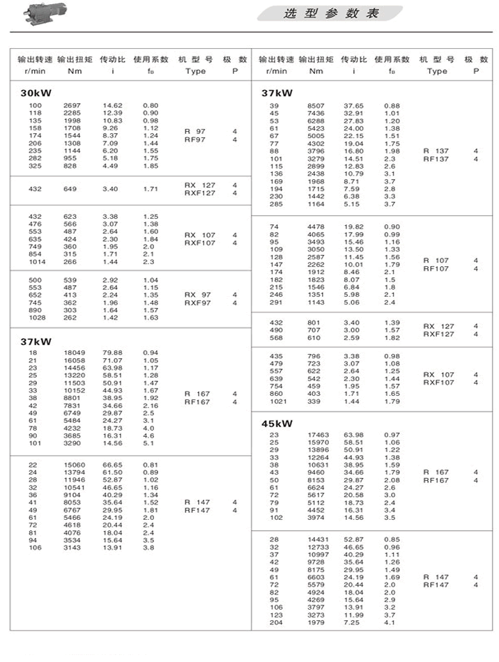 R斜齒輪減速機選型參數(shù)表30KW