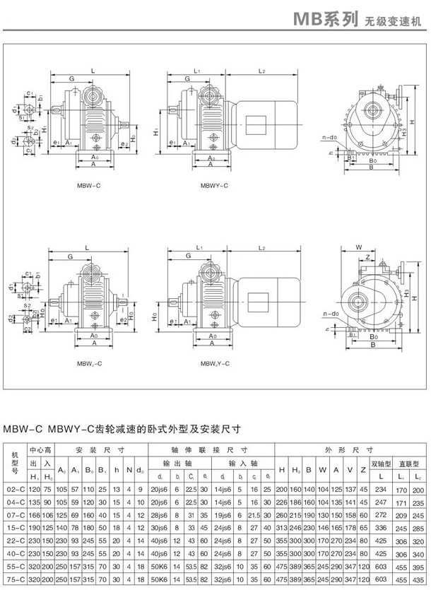 MB無級變速機外型安裝尺寸