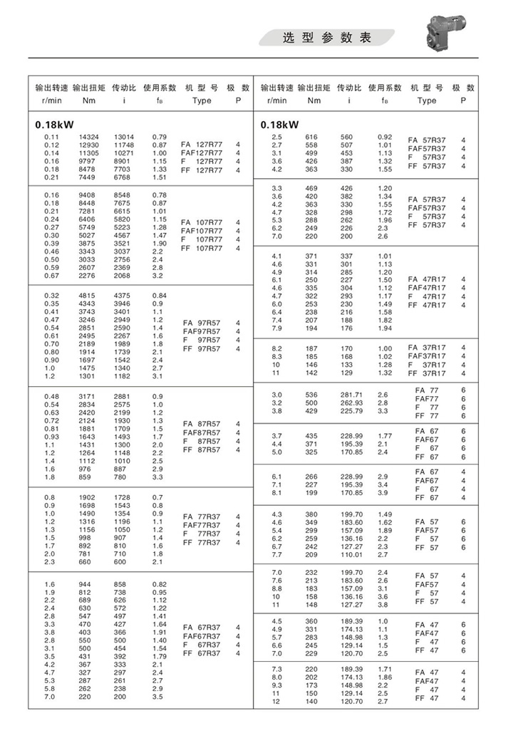 上一篇:F平行軸斜齒輪減速機選型參數(shù)表0.25KW